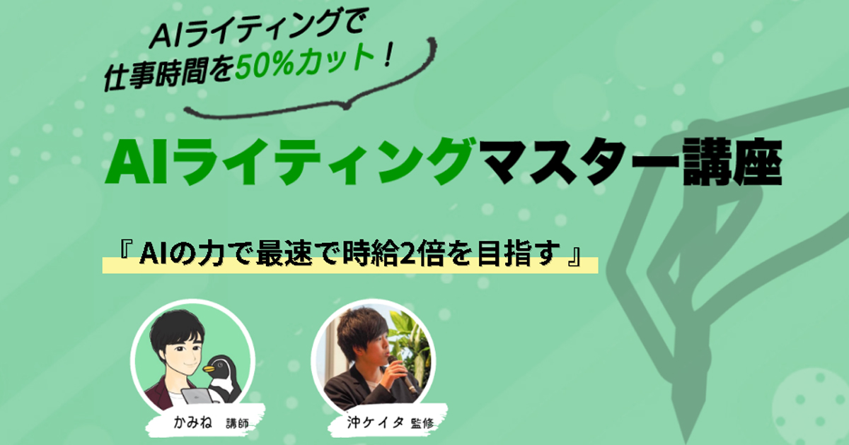 講師と監修: AI活用ライターでプロンプトエンジニアのかみね氏が講師を務め、2000人以上が受講するライター教材「Writing Hacks」の講師でもある株式会社沖プロ代表の沖ケイタ氏が監修しています。
